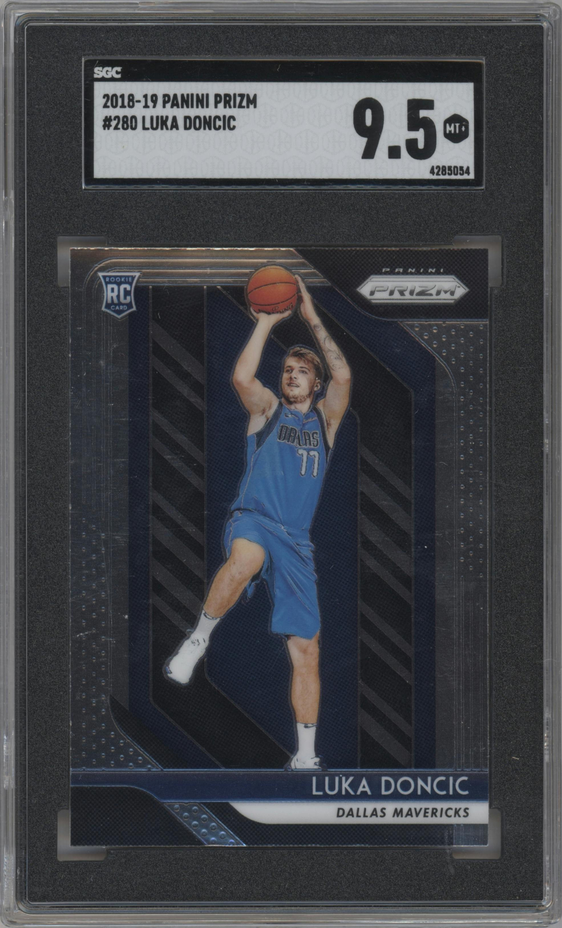 Luka Doncic from the 2018-19 Panini Prizm set graded by SGC and given an overall grade of 9.5.