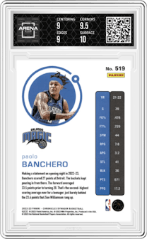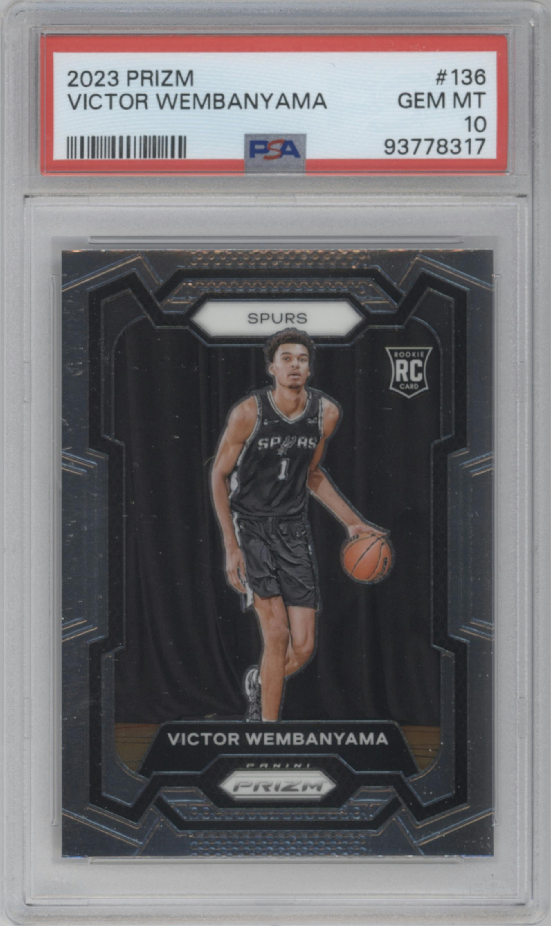 Victor Wembanyama from the 2023-24 Panini Prizm set graded by PSA and given an overall grade of 10.