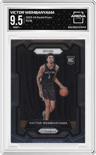 Victor Wembanyama from the 2023-24 Panini Prizm set graded by Arena Club and given an overall grade of 9.5.Victor Wembanyama from the 2023-24 Panini Prizm set graded by Arena Club and given an overall grade of 9.5.