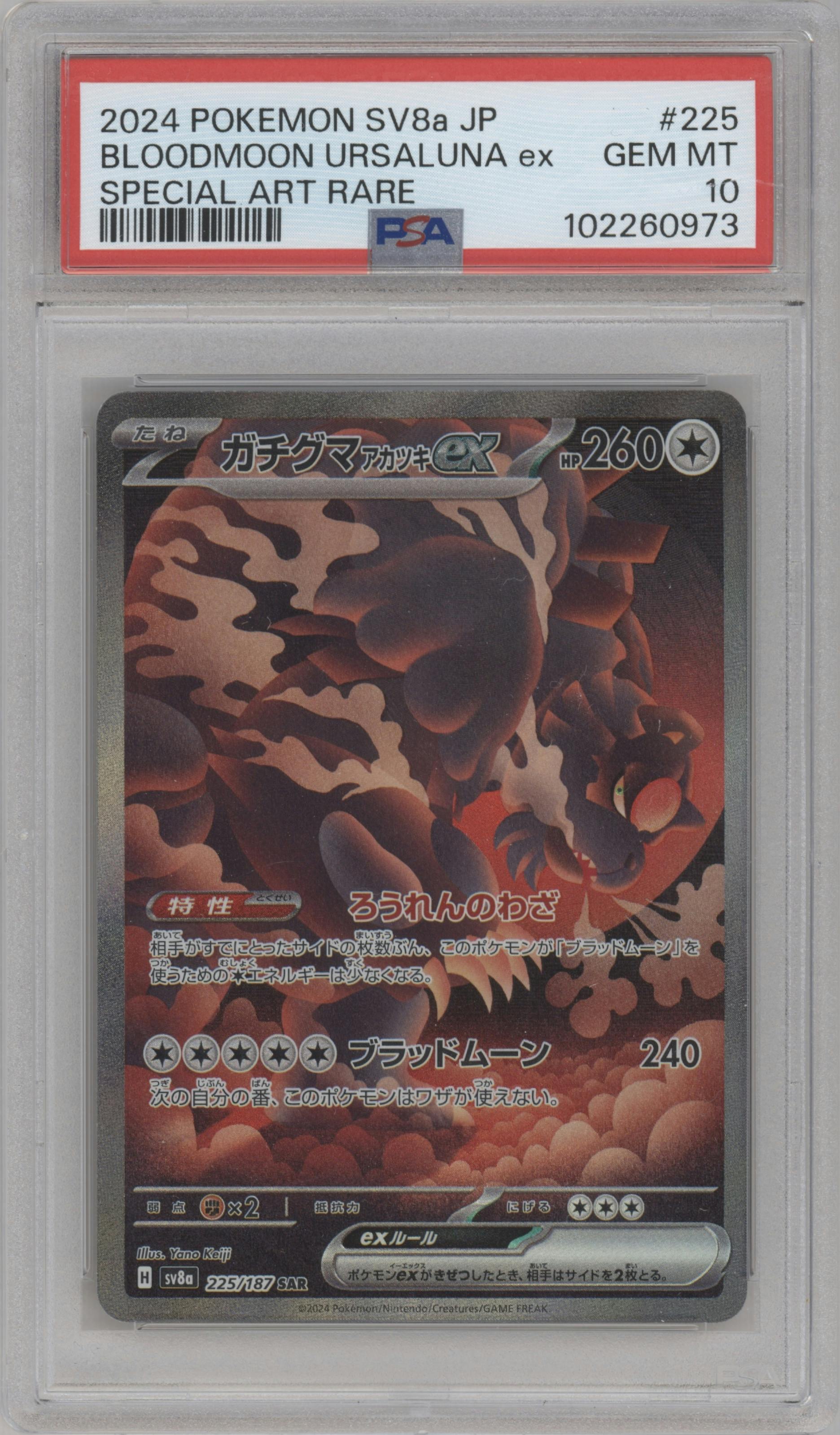 Bloodmoon Ursaluna ex from the 2024 Pokemon SV JPN set graded by PSA and given an overall grade of 10.